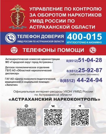 - 8(8512) 51-04-28 – антинаркотическая комиссия администрации МО «Городской округ город Астрахань»